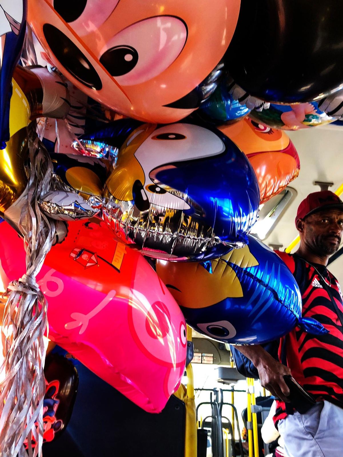 Mengo desistiu de ganhar a vida como motoboy. Agora é um caminhante, a vender balões com carinhas. Desce na primeira parada do Eixinho Leste da Asa Norte. "Só posso voltar pra casa quando juntar o dinheiro da comida dos meus filhos. Faço uns 10 quilômetros a pé quase todo dia."