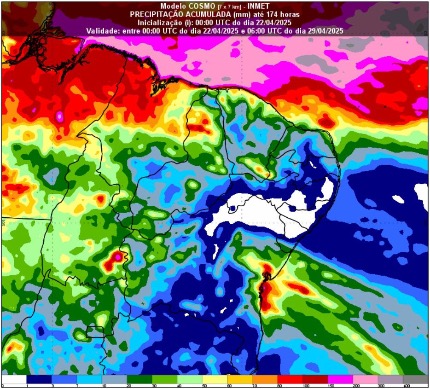 A previsão se baseia em dados recentes. Nos últimos cinco dias, o Baixo Parnaíba já registrou acumulados significativos: 128 milímetros em Barras, 93 milímetros em Cabeceiras e 77 milímetros em Ilha Grande. Para os próximos sete dias, a expectativa é de acumulados entre 50 e 100 milímetros na faixa Litorânea, tendência que já vem se confirmando.