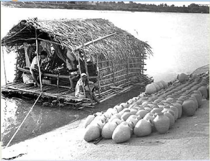 Balsas de talo de buriti, no rio Parnaíba, nos anos 1970