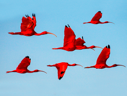Um fenômeno diário onde centenas de guarás (aves de plumagem vermelha intensa) voam em bando para se abrigar nos manguezais ao final da tarde.