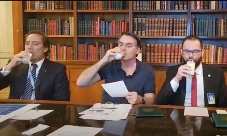 Já falou até em azia. Será intolerância à lactose? não, pois em 2020, quando estava, inacreditavelmente, no cargo de presidente da república brasileira, encenou a prática supremacista branca (criada no nazismo) de tomar leite em público, em simbólica defesa do racismo.