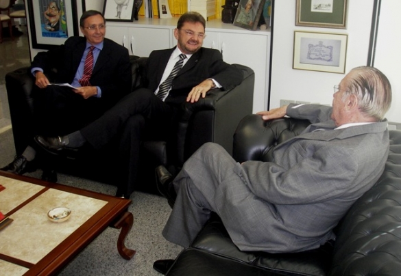 O governador Wilson Martins reuniu-se nesta quarta-feira (5) com o senador José Sarney (PMDB-AP) para discutir temas relativos ao Pacto Federativo. Ex-presidente do Senado Federal, Sarney mostrou-se a favor da revisão das alíquotas de ICMS referentes a compras não presenciais e à proposta de repasse de 1% a mais da arrecadação de Imposto de Renda e de Impostos sobre Produtos Industrializados aos estados.
