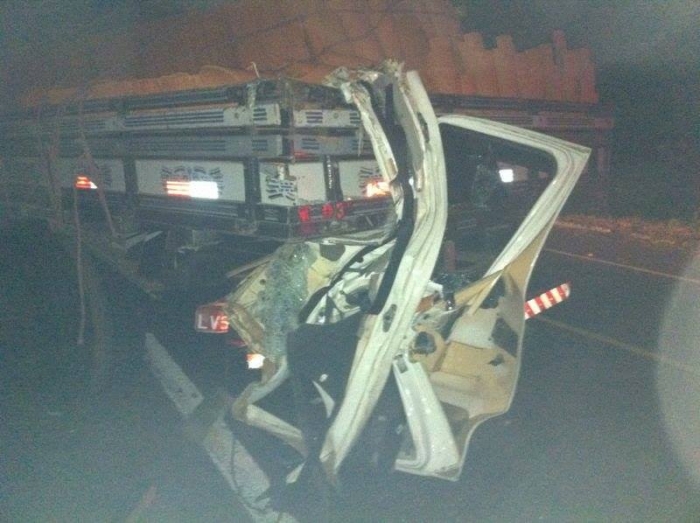 De acordo com a polícia, a van bateu na traseira do caminhão, que fazia o transporte de telhas.