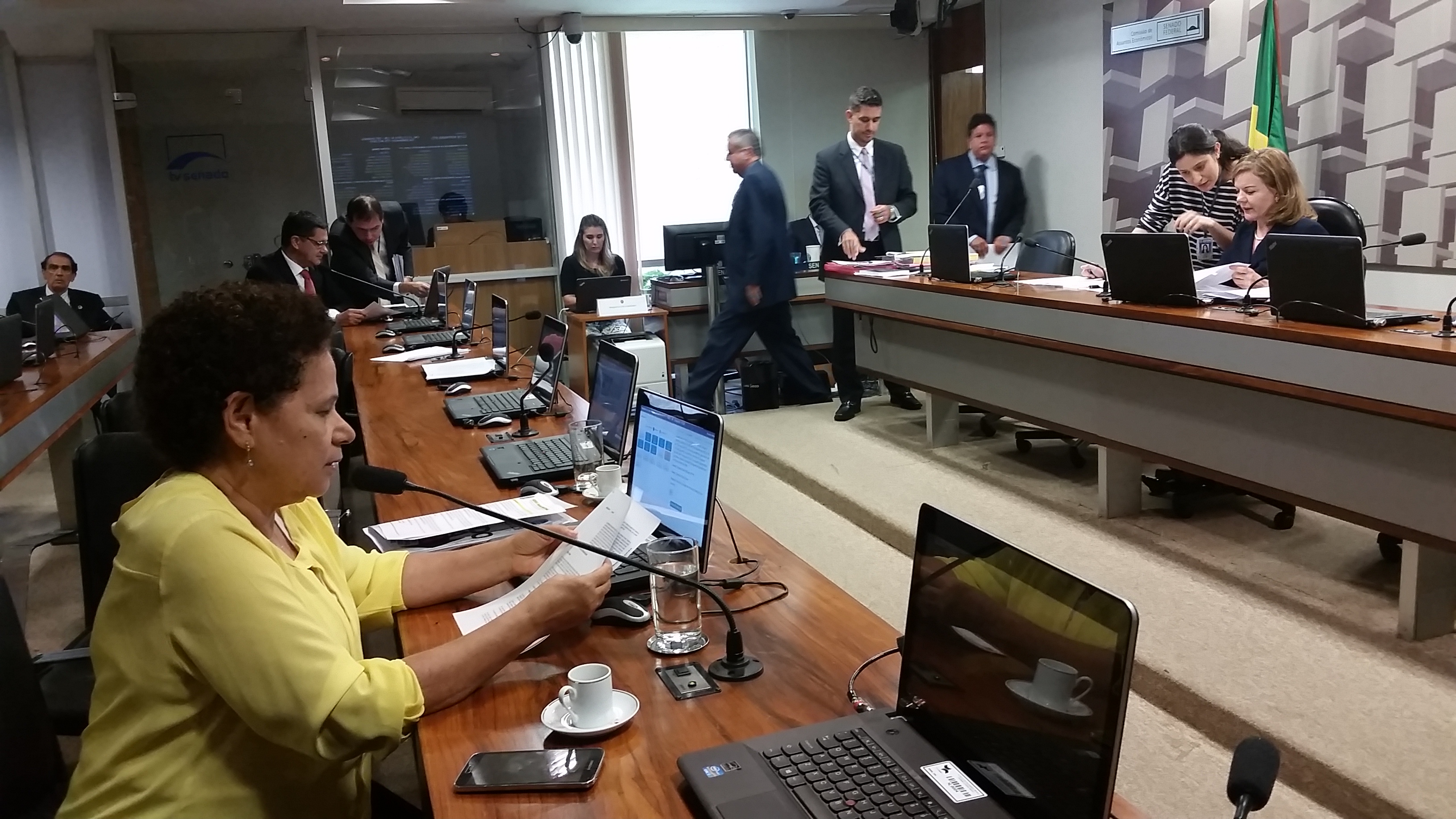 Após a leitura do relatório e encerrada a discussão na Comissão de Assuntos Econômicos, a votação do projeto teve de ser adiada por falta de quórum. Nenhum senador da base de apoio ao governo Temer esteve presente na CAE para apreciar os projetos, o que impediu a votação da redução dos salários dos parlamentares.